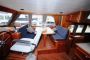 Durch die ganz zu öffnende Türe ist der Salon zu vergrössern, wodurch ein riesiger niveaugleicher Raum entsteht. Der Schlaf- und Sanitärräume sind Unterdecks zu finden. Sehr eindrucksvoll ist die gelungene Synthese von klassischer, robuster Form der Drifterlinie und die moderne Linien eines echten Passagemaker-Trawlers. Es entsteht ein ganz eigene Atmosphäre an Bord einer EV, weil der Salon und der offene Pflicht -auf der gleichen Höhe – eine Einheit bilden und zusammen mit dem darüber gelegenen Hinterdeck (Sonnendeck) ein riesiger Raum bieten. Darüber hinaus versehen mit extra Isolation für eine lange Saison. Geeignet für Innengewässer und IJsselmeer.